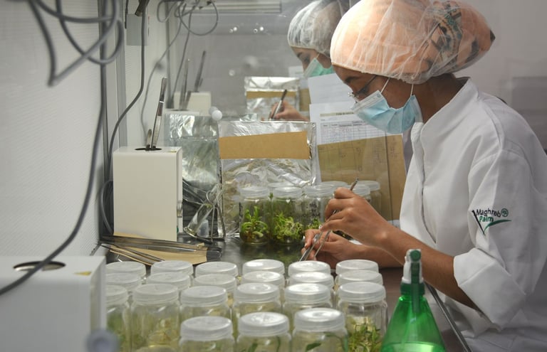 Fondé en 2015, le laboratoire Maghreb Palm est une référence régionale dans le domaine de la culture in vitro et de la micropropagation des plantes. Basé dans la région du Souss-Massa, il se consacre à la multiplication rapide et de haute qualité des espèces végétales adaptées aux environnements arides et semi-arides, tout en valorisant les cultures locales.